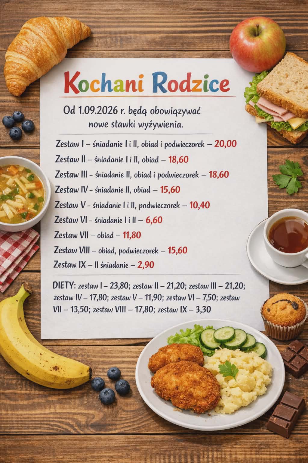 Opłaty za żywienie w roku przedszkolnym 2026/2027